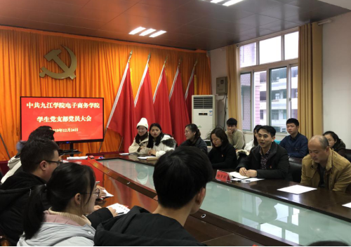 12月24日,电子商务学院学生党支部在竞秀楼508会议室召开全体党员大会,党委书记赵宇剑同志参加指导,学生党支部书记黄佳宇同志主持会议。