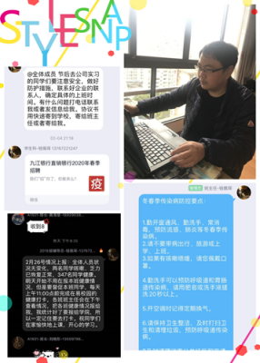 作为就业工作专项负责人,他深知此时学生最关注实习、毕业的情况,他每天利用QQ群开展工作,为学生答疑解惑。防控发生以来,他及时发布《九江学院致2020届毕业生的一封信》,发布各类企业的网上招聘信息,及时了解毕业生的需求,与企业进行沟通,构建了毕业生与企业之间的桥梁。他组织联系20家企业参加“疫情对用人单位春季校招影响调查”,组织学院410名毕业生参加“教育部关于疫情对就业工作的问卷调查”工作,组织学院毕业生和企业,积极主动参加学校2月26日举办的首届网络视频双选会活动,并取得良好的效果。