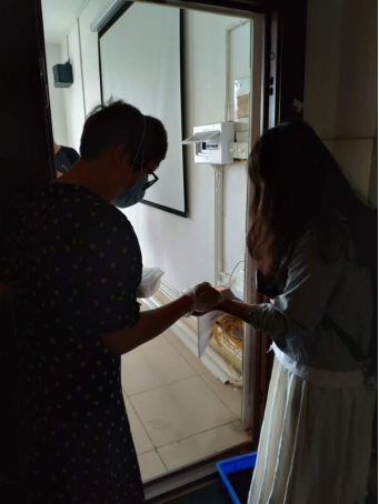 一大早,学院实训中心老师已提前来到实验室进行课前防疫消杀工作,并逐一为前来上课的学生进行体温检测和手足消毒。学院领导和教研科等职能科室人员根据课表,对实验室环境、座次安排、多媒体设备、教材配备等相关准备工作以及教师和学生的上课状态、线上线下教学内容的衔接等情况做了全面的检查。