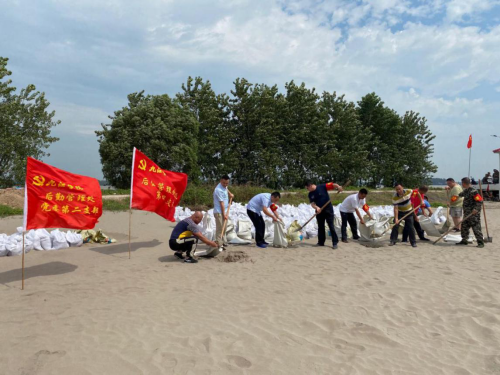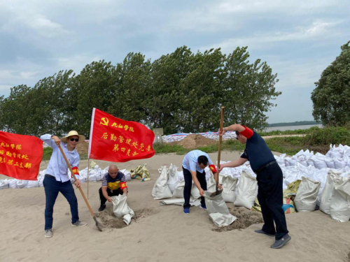 慰问活动结束后,后勤管理处的党员们来到长江干堤防汛一线,参与了填装沙袋等劳动。党员充分发挥党组织战斗堡垒作用和党员先锋模范作用,齐心协力、全力以赴,迅速投入到防汛救灾一线。上堤防汛事关重大,志愿服务慰问一线!这是党员党性锻炼的关键时刻,也是后勤服务社会的责任担当。