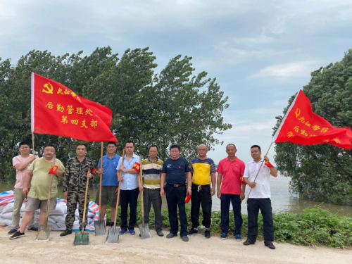 2020年7月18日上午,九江学院后勤党委两个支部13名党员前往江州镇,向奋战在长江干堤防汛一线江州镇江州村防汛3哨棚的值守人员表示诚挚的慰问,送去慰问品并与当地干群共同参与了义务劳动。